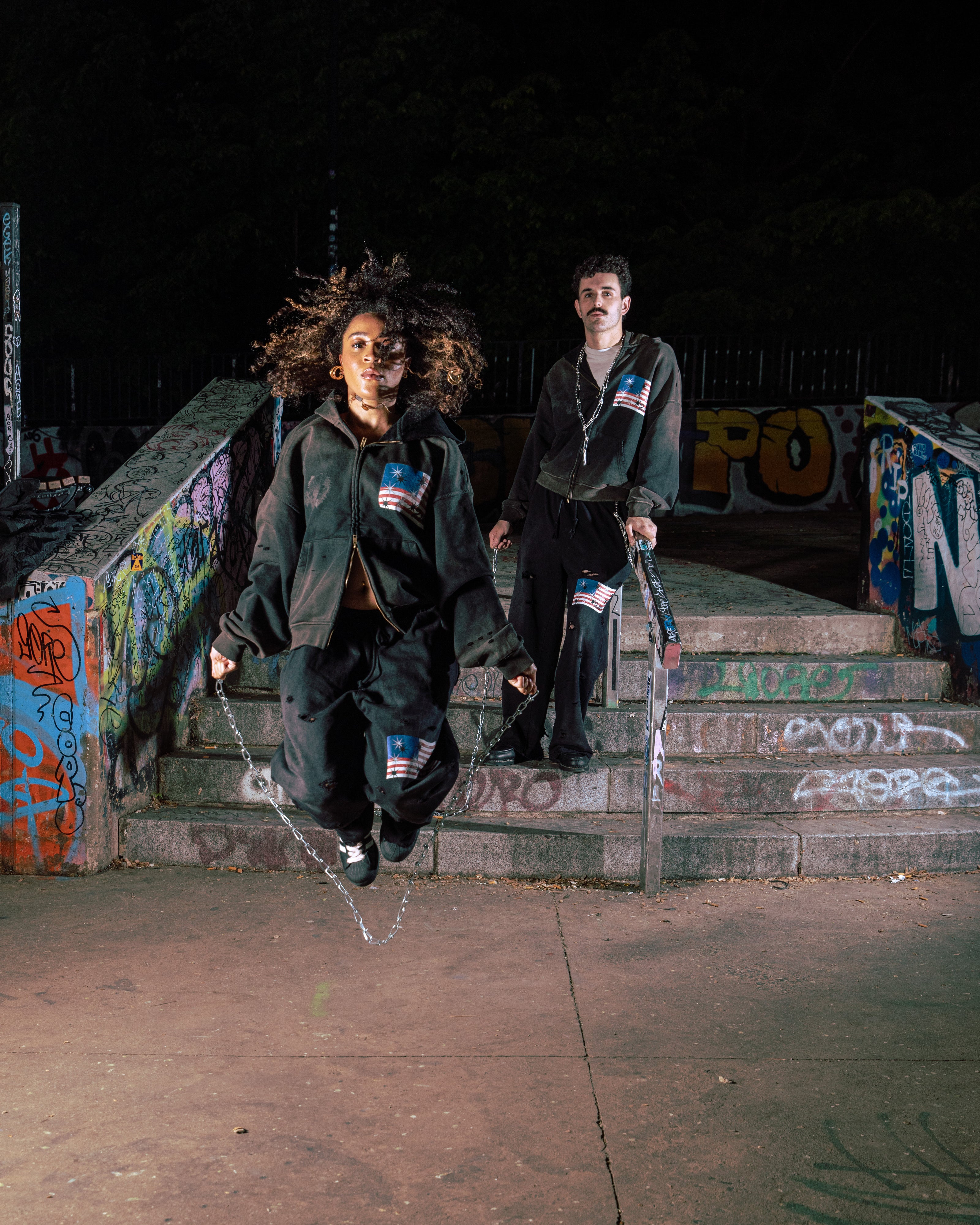 A chaotic polarizing urge towards a rebirth and resurgence in America. This was once a nation that prided itself on unity, but always deeply had differences that spread people amongst each other whether its ethnicity, political views, or economic events. The current zeitgeist of people emotionally separated through distress and uncertainty, but connected through rebellious thoughts and hope. 2DIFFDESIGNS presents our S/S 25 Rebirth collection.